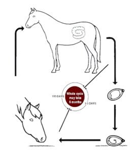 Notably, there is no need for an intermediate host, and the worms do not migrate to other organs within the body, making them relatively harmless to the horse.